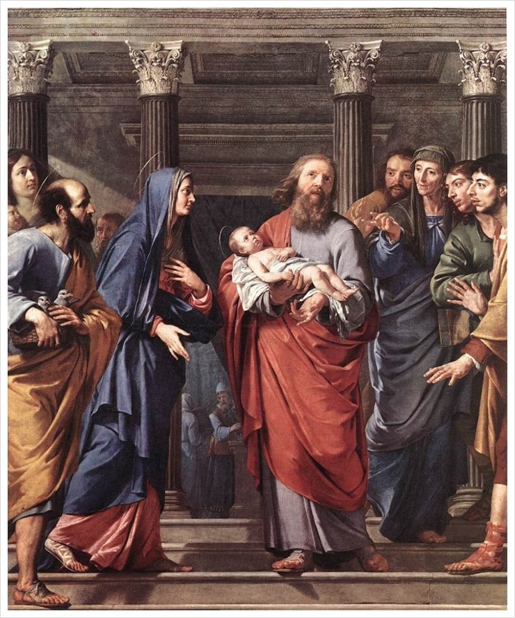 모세의 율법에 따라 정결례를 거행할 날이 되자, 성가정은 아기 예수님을 예루살렘으로 모시고 가서 아기 예수님을 주님께 바쳤습니다. 성가정은 “주님의 율법에 “태를 열고 나온 사내아이는 모두 주님께 봉헌해야 한다.”(루카2,23)고 기록된 대로 한 것”입니다. 첫 아들은 주님에 의해 축성되고, 속세를 떠나서 사제로서 오로지 하느님을 섬겨야 했는데(탈출13,2;민수18,15-16), 시간이 지나면서 하느님께서는 사제직을 레위인들에게만 한정시켰습니다. 하느님께서 첫아들에 대하여 가지고 계신 권리를 기억하도록 하려고 첫 아들은 성전에 봉헌하게 하셨고, 5세겔의 얼마 안 되는 돈으로 속량하도록 명하셨습니다.
