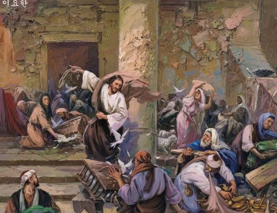 성전은 하느님과 인간이 만나는 특별한 장소입니다. 온 세계의 유다인들은 봉헌물과 희생 제물을 예루살렘 성전에 바쳤습니다. 그 봉헌물과 희생 제물을 사제들이 관리하고 있었으며, 그것은 정말 손쉽게 돈을 벌어들이는 좋은 수단이었습니다. 기도하는 집인 성전이 돈벌고 권력 잡는 짓을 경건한 예절로 변장시키는 장소로 둔갑해 버린 것입니다.