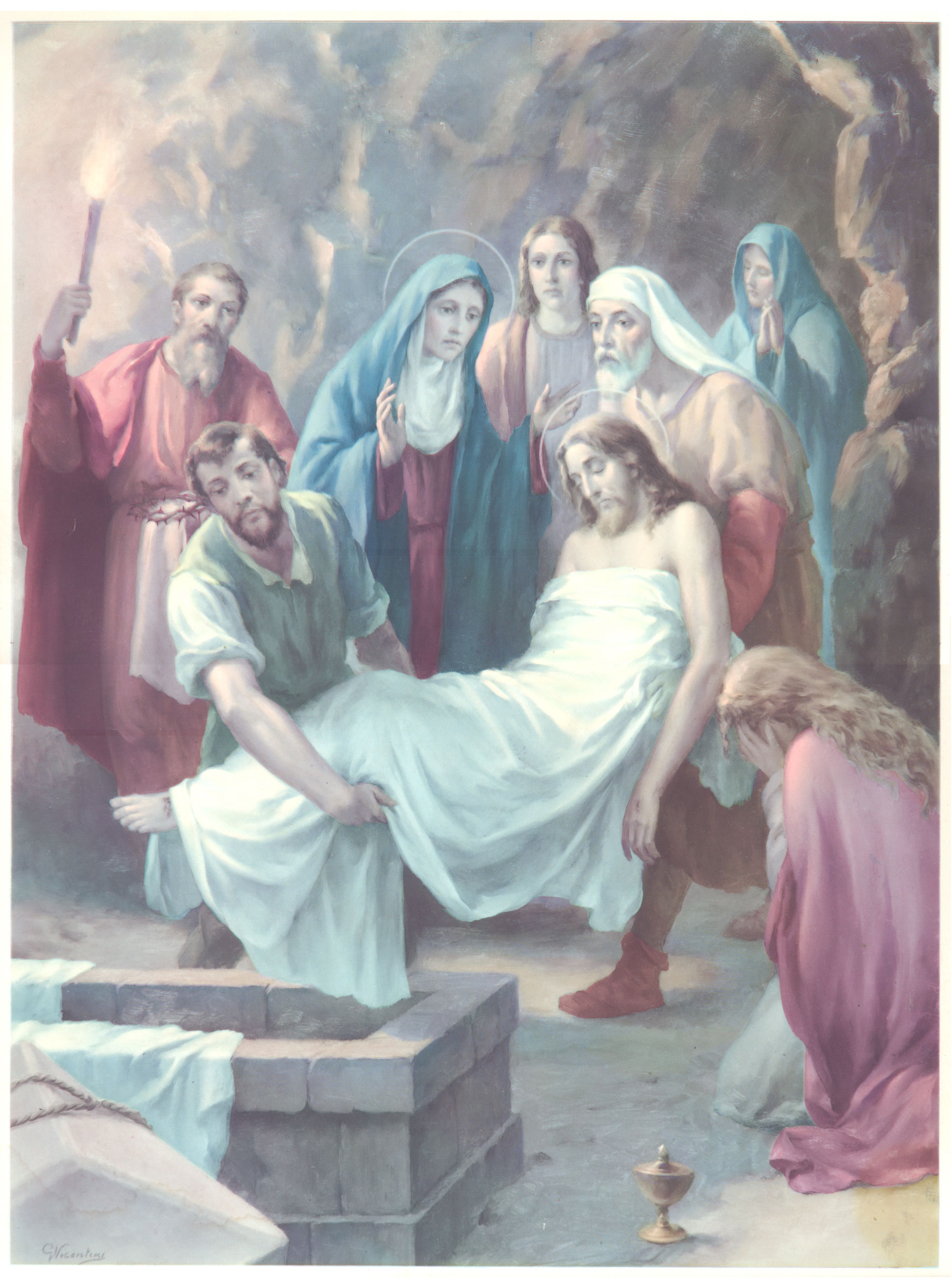 저녁때가 되자 아리마태아 출신의 부유한 사람으로서 요셉이라는 이가 왔는데, 그도 예수님의 제자였습니다. 이 사람이 빌라도에게 가서 예수님의 시신을 내 달라고 청하자, 빌라도가 내주라고 명령하였습니다. 요셉은 시신을 받아 깨끗한 아마포로 감싼 다음, 바위를 깎아 만든 자기의 새 무덤에 모시고 나서, 무덤 입구에 큰 돌을 굴려 막아 놓고 갔습니다. 거기 무덤 맞은쪽에는 마리아 막달레나와 다른 마리아가 앉아 있었습니다. 그들은 지금은 자신들이 할 수 있는 것이 아무것도 없지만 안식일이 끝나면 예수님께 향유를 발라 드리기 위해 무덤을 찾을 것입니다.