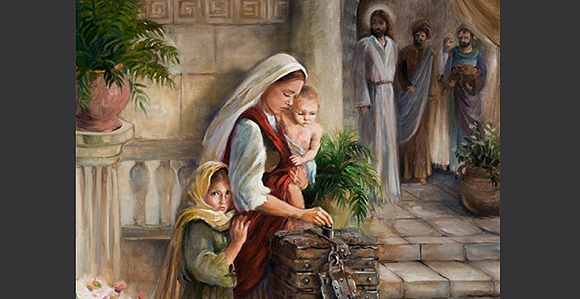 한 가난한 과부가 렙톤 두 닢(마르12,42)을 넣었습니다. 그녀는 특별한 지향은 없지만 하느님을 위해서 온 마음으로 지극히 겸손하게 준비한 봉헌물(렙톤 2)을 자기 자신을 바친다는 의미로 봉헌했을 것입니다. 그 돈은 그날 그녀의 생활비였고, 그것이 없다면 그녀는 굶게 되기 때문입니다. 그런데 이 과부는 왜 자신의 생활비를 모두 바쳤을까요? 그녀가 삶을 포기해서 일까요? 아닙니다. 그 가난한 과부에게는 굶주림보다도 하느님을 바라보는 것이 더욱 행복했던 것입니다.