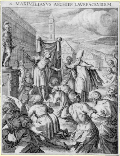 성 막시밀리아누스(Maximilianus, 또는 막시밀리아노)는 오스트리아와 바이에른(Bayern) 사이의 노비쿰(Novicum)의 사도이고, 파사우(Passau) 교외의 로흐 교구를 설정한 장본인 으로서 순교하였다. 그는 원래 오스트리아의 칠리(Cilli) 사람으로 7세부터 사제직 수업을 받았다. 부모는 매우 부유했으므로 많은 유산을 남겼지만, 그는 자선사업으로 모두 기증한 뒤에 로마(Roma)로 순례의 길을 떠났다. 교황 성 식스투스 2세(Sixtus II, 8월 7일)가 그 를 노리쿰(Noricum)의 선교사로 파견했는데, 후일 로흐에 주교좌를 세웠다. 그는 발레리아 누스과 아우렐리아누스 황제의 박해를 용케도 모면하고 20여년을 사목하였다. 그러나 노비 쿰의 집정관 누메리아누스의 박해를 피하지 못하여 칠리 성벽에서 참수형을 받아 순교하였 다. 로흐와 잘츠부르크(Salzburg)에서 공경을 받는 그의 축일은 10월 12일과 29일에 기념 하고 있다.