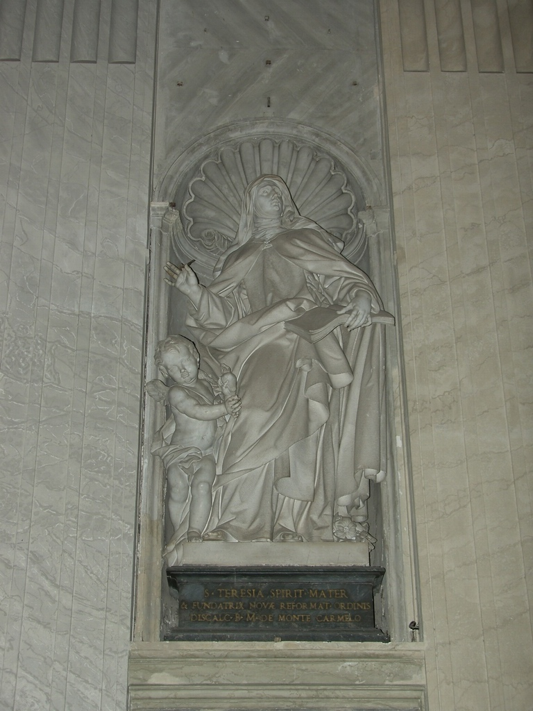 가톨릭 교회의 상징이자 중심이며 세계 가톨릭 신자들의 마음의 고향인 바티칸의 성 베드로 대성당 안에 있는 아빌라의 성녀 데레사상 모습입니다. 2006년 5월에 찍은 사진입니다.< 처음 사진>
