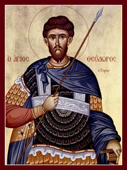 성 테오도루스(Theodorus, 또는 테오도로)는 \’티로\'(Tiro, 신병이란 뜻)라는 별명이 있었던 것으로 보아 로마 군인이었음이 확실하다. 그는 아마세아에서 이교도의 신을 공경하는 예식에 참석하기를 거부한 죄로 고문을 받고 투옥되었다. 그는 옥중에서 천상의 환시를 보고 즐겨 날뛰던 중 용광로에 던져지는 극형을 받고 순교하였다. 그는 헤라클레아(Heraclea)의 성 테오도루스(2월 7일)와 동일인물로 보인다.