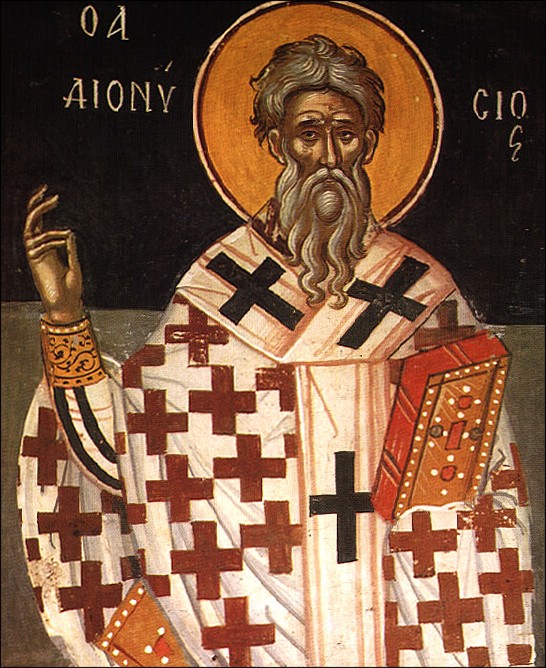 성 디오니시우스(또는 디오니시오)는 알렉산드리아 교리 학원에서 오리게네스(Origenes)의 문하생으로 공부하다가 그 자신이 원장이 되었고, 거의 14년 동안이나 이 학교에서 가르쳤다. 247년에 알렉산드리아의 주교로 승품되었는데, 때마침 박해가 일어나서 그도 역시 체포되었다. 그러나 다행히도 도망할 수 있었기 때문에 그는 리비아 사막의 모처에서 자기 교구를 다스렸으며, 251년에 데키우스 황제가 죽을 때까지 이런 식으로 주교직을 수행하였다.
