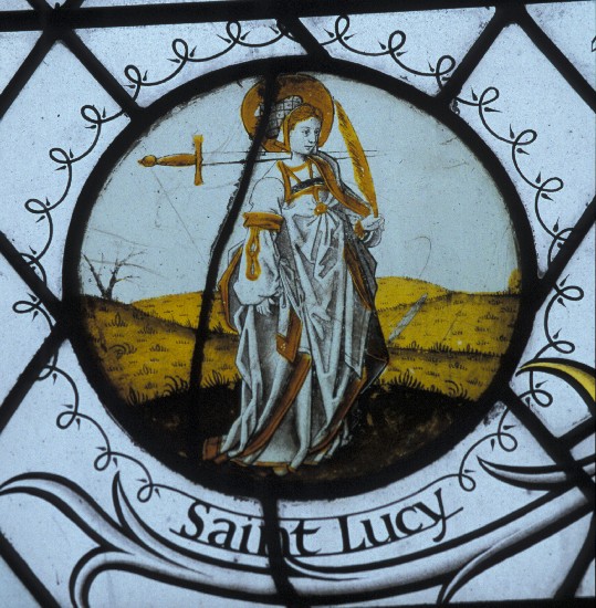 성녀 루치아(Lucia)는 시칠리아(Sicilia)의 시라쿠사(Siracusa)에서 태어났는데, 그의 양친은 귀족이었으며 매우 부유하였다. 그녀는 어릴 때부터 신앙을 배워 익히며 자랐지만 불행히도 아기 때에 부친을 잃었다. 아직 어린 소녀였던 그녀는 스스로 하느님께 동정을 서원했는데, 이 사실을 비밀로 간직하던 그녀는 어머니의 결혼 강요를 늘 받았다. 딸의 설득에 감복한 그녀의 어머니 에우티키아(Eutychia)는 카타니아(Catania)로 가서, 자신이 고생하던 병을 낫게 해달라고 성녀 아가타(Agatha)의 무덤에서 기도하였다. 이때 루치아도 따라갔는데, 어머니의 기도에 응답이 있었다.