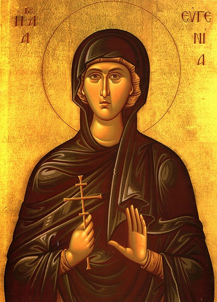 로마 순교록에는 분명하게 성녀 에우게니아(또는 에우제니아)가 기록되어 있으나, 그녀에 대한 이야기는 불확실하고 로맨틱한 전설이 되어 전해온다. 이 전설에 따르면 그녀는 알렉산드리아의 백작 성 필리푸스(Philippus, 9월 13일)의 딸로 그녀의 부친은 로마 황제 콤모두스(Commodus)의 치하 때 이집트의 총독으로 활약하였다. 그녀는 남장을 하고 부친의 집을 빠져 나와서 헬리오폴리스(Heliopolis)의 주교이던 헬레누스(Helenus)로부터 세례를 받았다. 성녀 에우게니아는 그 이후 수도원으로 들어갔다. 그녀는 이때까지도 남장을 하였기 때문에 수도원장까지 되었다.