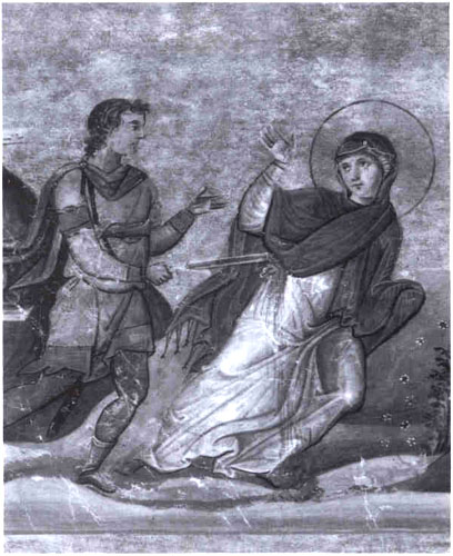 둘치시우스 총독이 테살로니카에서 잔인한 박해를 계속할 때 연일 수많은 그리스도인들이 모여들어 집회를 계속하였다. 천애고아인 성녀 아니시아가 신자들의 모임에 참석하기 위하여 카산드라 성문을 지날 때였다. 파수꾼 한 명이 그녀를 보고는 어디 가는 길이냐고 묻자, 위험을 느낀 아니시아는 엉겁결에 십자성호를 그으면서 뒷걸음질을 쳤다. 이에 군인 한 명이 뛰어와서 “너는 누구이며, 어디로 가느냐?”고 다그치자 그녀는 아주 태연하게, “저는 예수 그리스도의 종입니다. 주님의 모임에 갑니다.” 하고 대답하였다. “못 간다. 그 대신 너는 신전에 희생을 바쳐라\” 하고 강요하였다. 그녀가 말을 듣지 않자 베일을 벗겨 버렸다. 이어 그 군인은 그녀를 칼로 난자하여 성문에서 죽였다. 후일 테살로니카에 평화가 찾아들었을 때 교우들은 그녀가 순교한 자리에 기도소를 세우고 용감한 그녀의 신앙을 기렸다고 한다.