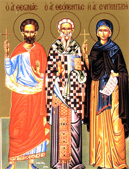 위 그림은 성 테오나(Theonas, 좌)와 성 테오펨프토(Theopemptus, 중)와 성녀 신클레티카(Syncletica, 우)