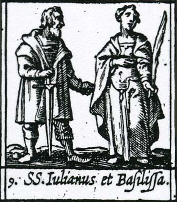 고대의 순교록에 의하면 성 율리아누스(Julianus)와 성녀 바실리사는 비록 결혼하여 부부생활을 하였으나 서로 동의하에 합의하여 평생 동안 정결을 지켰다고 한다. 그들은 엄격한 생활로써 자신들을 성화시켰으며, 그들의 수입을 가난한 사람들과 병자들을 위하여 늘 사용하여 항상 가난하게 살았다. 이런 목적으로 그들은 자신들의 집을 개조하여 일종의 병원으로 만들었는데, 어떤 때에는 수천 명의 사람들이 이용하여 늘 성시를 이루었다. 바실리사는 여성들을, 율리아누스는 남성들을 지도하였다. 이런 소문이 점차 퍼져나가자 박해의 손길이 이들에게 미쳐 디오클레티아누스 황제 때 부부가 영광스럽게도 순교의 월계관을 받게 되었다.