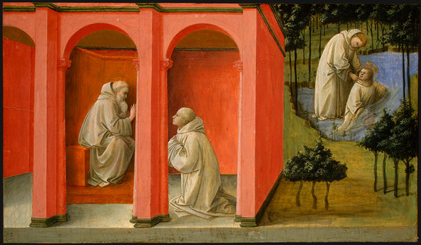 첫번째 그림은 누르시아의 성 베네딕토(Benedictus, 좌)와 수비아코의 성 마우로(Maurus, 중)와