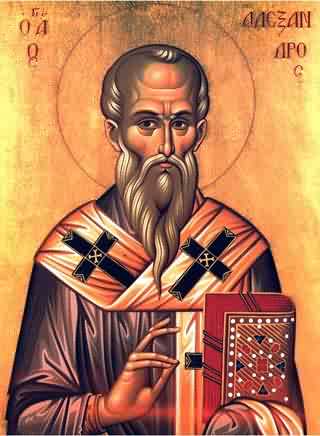 250년경 태어난 것으로 추정되는 성 알렉산데르의 초기 생애에 대해서는 거의 알려진 것이 없다. 313년 성 아킬라(Achillas, 11월 7일)를 계승하여 이집트 알렉산드리아의 총대주교로 임명된 그는 아리우스(Arius) 이단의 뛰어난 반대자였다. 자신의 온화한 책망으로 아리우스가 정통 교리로 돌아오지 않자, 성 알렉산데르는 318년 혹은 320년에 알렉산드리아 교회 회의를 개최하여 아리우스주의의 위험성을 인식하고 그와 추종자들을 파문에 처했다. 그 후 그는 325년의 제1차 니케아(Nicaea) 공의회에서 당시 부제였던 성 아타나시우스(Athanasius, 5월 2일)의 도움을 받아 아리우스의 파문 결정을 공식적으로 받아냈다.