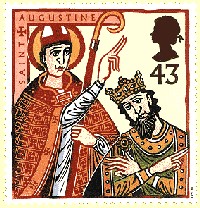 한편 교황 성 그레고리우스 1세(Gregorius I, 9월 3일)는 영국 브리타니아족을 침략한 픽트족, 앵글족, 색슨족, 주트족 등 이교 민족들을 그리스도교로 개종시키라는 사명을 주어 캔터베리의 성 아우구스티누스(Augustinus, 5월 27일)를 켄트로 파견하였다. 성 에텔베르트는 597년 켄트 해안에 도착한 성 아우구스티누스를 정중하게 맞이하였다. 성 아우구스티누스의 설교와 사도직은 놀라운 성과를 가져왔고, 그의 설교와 모범을 보고 성 에텔베르트 왕은 같은 해 예수 성탄 대축일에 여러 신하들과 함께 세례를 받음으로써 앵글로 색슨족 중 최초의 그리스도교 신자 왕이 되었다. 당시 왕권이 절정에 다다랐던 성 에텔베르트는 세례를 받은 후 앵글로 색슨 교회의 선교에 적극적인 후원자가 되었다. 후에 성 아우구스티누스는 캔터베리 대주교좌의 초대 대주교가 되었다.