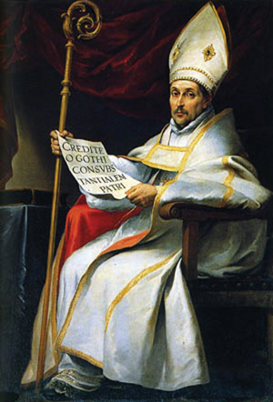 성 풀겐티우스(Fulgentius, 1월 16일), 성 이시도루스(Isidorus, 4월 4일) 그리고 성녀 플로렌티나(Florentina, 6월 20일)와 형제지간인 성 레안데르는 카르타고(Carthago) 출신이나 에스파냐의 세비야로 이주하여 그곳에 정착하였다. 그는 그곳에서 수도자가 되면서부터 에스파냐에 있던 아리우스파(Arianism)와 싸웠고, 583년에 교황 성 대 그레고리우스 1세(Gregorius I, 9월 3일)를 만났으며, 584년에 세비야의 주교가 되었다. 그는 국왕으로부터 추방되자 유배지에서 아리우스파(Arianism)를 반대하는 글을 쓰기도 하였다. 그는 주로 아리우스 이단에 빠진 주교들의 회개사업에 헌신하여 큰 성공을 거두었고, 589년의 톨레도(Toledo) 교회 회의를 주재하였다. 그는 에스파냐 전례의 개혁자로 유명하고, 수녀들을 위한 규칙을 만들기도 하였다. 그는 에스파냐 교회에서 교회학자로 공경을 받는다.