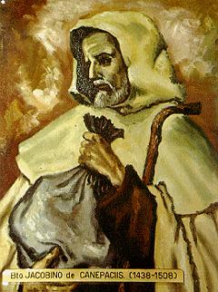 이탈리아 북부 피에몬테(Piemonte) 지방 베르첼리(Vercelli) 근처의 어느 가난한 부모에게서 태어난 야코비누스(또는 야코비노)는 베르첼리에 있는 한 카르멜회에 입회하여 평수사가 되었다. 그는 특히 성모 신심에 있어서 남달리 뛰어났는데, 그런 그의 열심히 수도원 내의 모든 수도자들에게 큰 자극을 주었다. 그의 주요 임무는 마을을 다니며 집집마다 애긍을 청하는 힘든 일이었는데, 그는 군소리 한마디 없이 그 일을 영웅적으로 행하여 덕을 쌓았다. 그에 대한 공경은 1845년 교황 그레고리우스 16세(Gregorius XVI)에 의해 승인되었다. 그는 카네파치스(Canepacis)의 야코피누스(Jacopinus)로도 불린다.