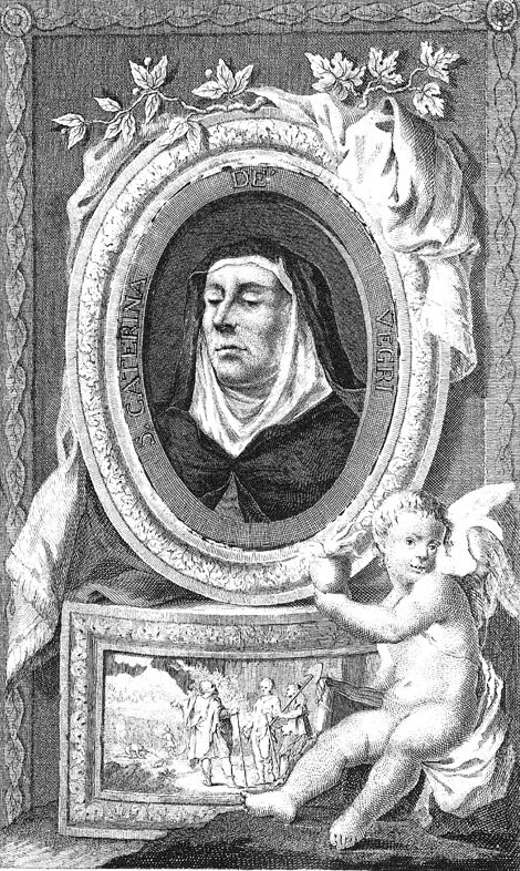 이때부터 그녀는 그리스도와 사탄의 환시를 보기 시작했으며, 어느 성탄절 때 일어난 자신의 체험을 글로 썼다. 그것은 아기 예수를 팔에 안은 마리아의 환시였는데, 이 환시는 그 후부터 많은 화가들이 즐겨 그리는 그림이 되었다. 그녀는 유능한 수련장이자 원장이었다. 그녀는 서도와 회화에 특별한 재능을 보였으며, 뛰어난 성덕으로 인하여 그녀의 수도원은 곧 유명하게 되었고 천상 은총으로 충만하였다. 그녀가 손수 장정하고 장식한 성무일도서는 지금도 볼로냐 수도원에 보관되어 있다. 성녀 카타리나는 여러 책의 시와 산문을 남겼으나 간행되지는 않았다. 그녀는 1712년 교황 클레멘스 11세(Clemens XI)에 의해 시성되었으며, 예술가들의 수호성인으로 공경을 받고 있다.