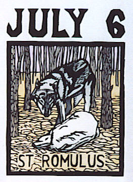 성 로물루스(또는 로물로)는 사도 성 베드로(Petrus)에 의하여 개종한 로마인 제자로 이탈리아 피에졸레의 초대주교가 되었다. 그러나 도미티아누스 황제의 그리스도교 박해 때에 성 카리시무스(Carissimus)와 둘치시무스(Dulcissimus) 그리고 크레스켄티우스(Crescentius)와 더불어 순교하였다. 로물루스는 원래 루체르나(Lucerna)의 서자로서 유기되었으나 이리가 그를 길렀다고 한다.