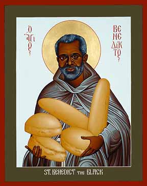 성 베네딕투스 아 상토 필라델포(Benedictus a Sancto Philadelpho, 또는 베네딕토)는 아프리카 계통의 부모 밑에서 태어났는데, 그의 부모는 이탈리아 시칠리아(Sicilia)의 메시나(Messina) 근처에서 노예로 일했다고 한다. 그래서 베네딕투스는 시칠리아에서 태어났으며, 어릴 적에 그의 주인으로부터 자유를 얻었다. 그가 유색인종이기 때문에 공적으로 해를 입었을 때 그의 나이는 21세였다.