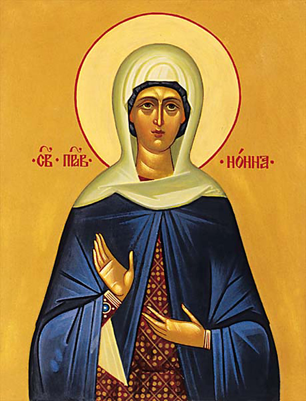 자세한 전기는 알 수 없으나 성녀 논나는 그리스도인으로서 그레고리우스(Gregorius)란 사람과 결혼했는데, 남편은 카파도키아(Cappadocia)의 나지안주스의 지사였으며 유대인 이교인 그룹의 주요 멤버였다. 그녀는 오로지 자신의 표양만으로 남편을 그리스도인으로 개종시켰을 뿐만 아니라 사제가 되게 하였고, 그 후에는 주교까지 된 나지안주스의 성 그레고리우스(1월 1일)를 후원한 장본인이다. 그녀의 세 아이들 역시 모두 성인이 되었다. 나지안주스의 성 그레고리우스(1월 2일), 나지안주스의 성 카이사리우스(Caesarius, 2월 25일) 그리고 성녀 고르고니아(Gorgonia, 12월 9일)가 그들이다.