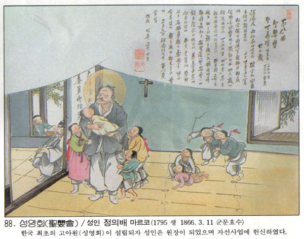 성 정의배 마르코(Marcus)는 서울 창동의 어느 양반집 태생으로 어려서부터 천성이 어질고 진실하며 행동이 신중하였다. 그러나 그의 집은 유학을 숭상하였기에 오로지 사서오경을 외우며 과거공부에만 전념하였다. 과거 공부를 마친 후 서울의 어느 서당에서 아이들에게 한문을 가르치며 살다가 결혼한 지 얼마 되지 않아 아내가 세상을 떠나자 자식도 없이 홀로 생활하였다.
