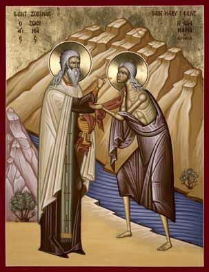 이 소리의 주인공이 곧 이집트의 성녀 마리아(Maria, 4월 2일)이다. 그녀는 이집트 여성으로 17년 동안이나 거리의 여성으로 살아 왔는데, 돈을 위해서가 아니라 자신의 욕망을 충족시키기 위함이었다고 한다. 28세 때 그녀는 예루살렘으로 성 십자가 현양 축일을 지내러 가는 일단의 무리들과 합류하게 되었는데, 여행을 하는 도중에 자기의 악습을 고치지 못하고 열심한 순례자들을 타락하게 만들었다는 것이다. 드디어 예루살렘에 당도하여 성당에 들어가려 하니, 뒤에서 누가 잡아당기는 듯하여 들어가지 못하고 한쪽 구석에 서 있다가 처음으로 자신의 잘못을 크게 깨달았다는 것이다. 이윽고 눈을 들어 마리아상을 바라보니, 그 성모님께서 눈물을 흘리고 계셨다고 한다. 그때서야 그녀는 밝은 마음으로 성당으로 들어갔고 깊이 통회하니, “너는 요르단으로 가서 여생을 지내라”고 명하여 이렇게 사막에 산다는 것이었다. 그녀는 요르단 사막에서 47년 동안이나 사람 한 사람 구경하지 못하고 살았다.