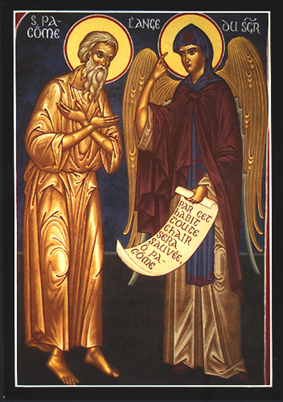 \’왕의 독수리\’라는 뜻을 지닌 성 파코미우스(또는 파코미오)는 290년경 북이집트 에스네(Esneh)에서 이교인 부모의 아들로 태어나 성장하였다. 그는 자신의 뜻과는 상관없이 310년경 군대에 징집되어 이곳저곳에서 복무하던 중 라토폴리스(Latopolis)에 살던 그리스도인들의 모범적인 자선활동에 매력을 느껴 1년간 군복무를 한 후 셰네시트(Shenesit)로 가서 세례를 받았다. 그 후 그는 좀 더 완전한 신앙생활을 하기 위해 은수자가 되기로 결심하고 은수자 성 팔레몬(Palaemon, 1월 11일)을 찾아가 그의 제자가 되었다. 성 파코미우스는 몇 년 동안 엄격한 금욕주의자였던 스승과 함께 머물며 은수생활을 하였다.