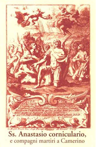 성 아나스타시우스(또는 아나스타시오)는 데키우스 황제의 군사 호민관이었다. 그는 자신의 직책 때문에 그리스도인들을 고문하고 죽음으로 내몰았으나 순교자들의 용기를 목격하고는 그리스도교로 개종하였다. 그는 개종하고 며칠 지나지 않아 체포되어 가족과 노예들과 함께 모두 참수형을 받고 순교하였다. 그들의 유해는 오늘날 이탈리아의 카메리노(Camerino)에 안치되어 있다.