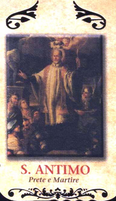 로마의 사제인 성 안티무스(또는 안티모)는 많은 사람들을 그리스도교로 개종시켰다고 전해지고 있다. 그는 감옥에 갇힌 그리스도인들에 대한 애덕으로 잘 알려진 루키나(Lucina)라는 그리스도인 부인의 이교도 남편을 개종시켰다. 성 안티무스는 체포되어 티베르(Tiber) 강에 던져지는 형을 받았으나 기적적으로 구출되었다가 다시 체포되어 참수를 당하였다.