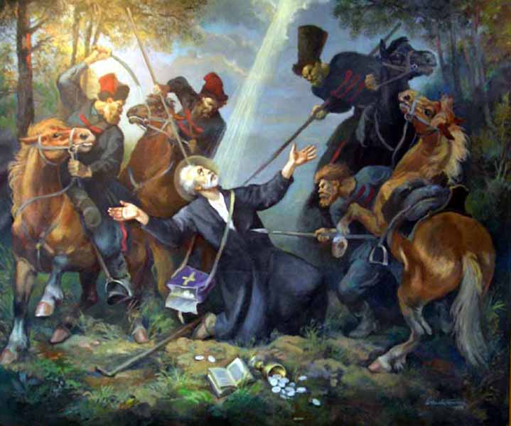 성 안드레아 보볼라(Andreas Bobola)는 1590년 폴란드 귀족 가문에서 태어나 1622년 빌나(Vilna, 오늘날 리투아니아의 수도인 빌뉴스, Vilnius)의 예수회에 입회하였다. 그는 성 카시미루스(Casimirus) 성당에서 사목활동을 하고 1630년 종신서원을 한 뒤 브로뷔스크(Brobuisk)에 있는 예수회의 총장이 되었다. 1636년 성 안드레아는 리투아니아 선교사로 파견되었다. 그는 라드지웰(Radziwell) 왕자로부터 벨로루시(Belarus)의 핀스크(Pinsk)에 있는 수도원을 제공받아 개신교도들과 분리주의자들의 공격에도 불구하고 열성적으로 활동하였다. 1657년 5월 10일 성 안드레아는 두 명의 코사크인(kazak)에게 납치되었다. 그들은 성 안드레아를 때린 뒤 묶어서 말의 안장에 매달고는 고문 장소까지 끌고 갔다. 그는 그곳에서 갖은 고문 끝에 참수형을 받고 순교하였다. 그의 유해는 핀스크에 모셔졌다가 폴로츠크(Ploltsk)로 이장되었다. 그는 1853년 10월 30일 교황 비오 9세(Pius IX)에 의해 복자품에 올랐고, 1938년 4월 17일 교황 비오 11세에 의해 성인품에 올랐다.