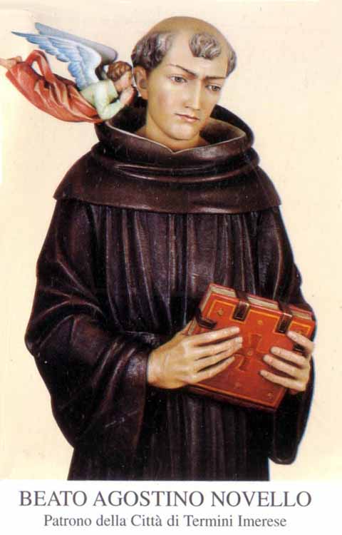 이탈리아 시칠리아(Sicilia) 섬의 타오르미나(Taormina)에서 태어난 마태오(Matthaeus)는 볼로냐(Bologna)에서 수학하여 법학박사 학위를 받고 법률을 가르치는 등 화려한 경력의 소지자였다. 그는 시칠리아의 국왕 만프레드(Manfred)의 수상이 되었으나 베네벤토(Benevento) 전투에서 심한 부상을 입고 정계에서 은퇴하였다. 이때 한 수도자가 만일 하느님께 전적으로 자신을 봉헌한다면 완쾌되리라는 약속을 했는데, 이것이 사실로 나타나자 그는 성 아우구스티누스 은수자회에 평수사로 입회하여 아우구스티누스 노벨로(Augustinus Novello, 또는 아우구스티노 노벨로)라는 수도명을 택했다.