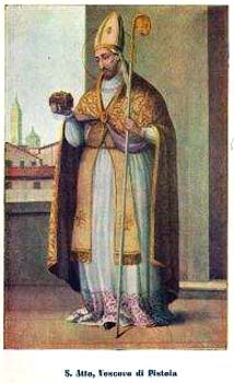성 아토(Attho 또는 Atto)는 에스파냐의 바다호스(Badajoz)에서 태어났다. 일부 이탈리아 성인전 작가들은 그를 피렌체(Firenze) 사람이라고 주장하나 여러 증거들을 볼 때 그는 에스파냐 사람이다. 그는 발롬브로사(Vallombrosa)의 베네딕토회에 입회하여 수도원 총장이 되었고 또 피스토이아의 주교가 되었다. 성 아토는 성인전 작가로서 성 요한 괄베르투스(Joannes Gualbertus, 7월 12일)와 파르마(Parma)의 성 베르나르두스(Bernardus, 12월 4일)의 전기 그리고 에스파냐 산티아고 데 콤포스텔라(Santiago de Compostela) 성지의 역사에 대한 저술을 남겼다.