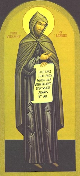 성 빈첸시오(Vincentius)는 프랑스 트루아(Troyes)의 주교인 성 루푸스(Lupus, 7월 29일)의 동생으로서 레렝스 수도원에 입회하기 전에는 군인이었다. 434년경 그는 이 수도원의 수도 사제로 생활하던 중 이단을 반박하는 저서(Commonitorium)를 출간했다. 그는 이 저서에서 자신을 이방인 혹은 이 세상의 순례자로 묘사하고, 그리스도를 섬기는 일 외에는 모든 것이 헛되다고 외쳤다. 그는 이단을 반박하는 자료로 교부들의 뛰어난 저서와 신학 이론을 제시했는데, 모두 42장으로 구성된 저서였다.