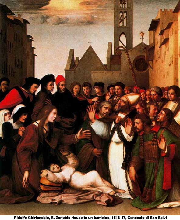 <첫번째 그림> 리돌포 기를란다요의 한 아이를 구하는 성 제노비오(Zenobius)