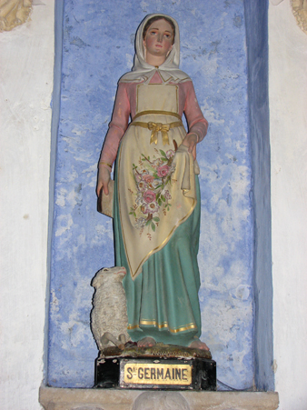 성녀 게르마나 쿠쟁(Germana Cousin, 또는 제르마나)은 프랑스 툴루즈(Toulouse) 교외 어느 마을의 농가에서 태어났다. 그녀는 어릴 때부터 병약한데다가 연주창(連珠瘡)까지 걸렸으며 손은 바싹 말라 있었다. 그래서 집안에서만 지냈고 계모의 구박이 심한 처지에서 자라났다. 그녀는 음식 찌꺼기나 얻어먹으며 벽장이나 외양간에서 잠을 잤으며 아홉 살부터는 매일같이 양을 치러 다녔다. 이웃 사람들은 모두 그녀의 열심을 비웃으며 ‘완고한 미신장이’로 불렀다. 게르마나는 이 모든 것을 선의로 받아 들였고, 누구에게나 항상 도움을 베풀 마음가짐이 되어 있는 착한 소녀였다.