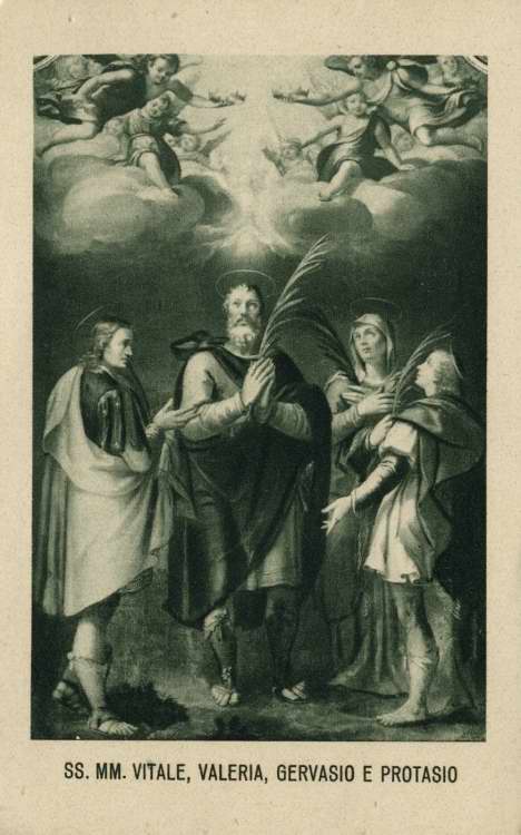 위 그림은 밀라노의 성 비탈리스(Vitalis)와 성 제르바시오(Gervasius)와 성 프로타시오(Protasius)와 성녀 발레리아(Valeria) 가족 순교자이다.