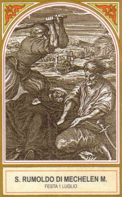 성 루몰두스(Rumoldus, 또는 루몰도)는 벨기에 플랑드르(Flandre) 지방 말린의 주교이자 수호성인이다. 그는 고향 아일랜드에서 오랫동안 하느님만 충실히 섬기던 수도자였는데, 영혼들을 구하려는 열정을 이기지 못하여 인근의 우상숭배자들에게 복음을 전하러 다녔다. 그는 로마(Roma)까지 여행했는데 그곳에서 선교사 칭호와 주교로 축성된 후 벨기에 중앙부 브라반트(Brabant)로 파견되어 성 빌리브로르두스(Willibrordus, 11월 7일)와 합류하였다. 그는 말린에서 두 사람에 의해 순교했는데, 그가 그들의 사악한 행동을 공공연히 비난했기 때문이었다. 그의 유해는 말린의 주교좌 성당에 안치되었다. 성 루몰두스는 또한 아일랜드 더블린(Dublin)의 주교로서, 스코틀랜드 왕의 아들로서 기억되고 있다.