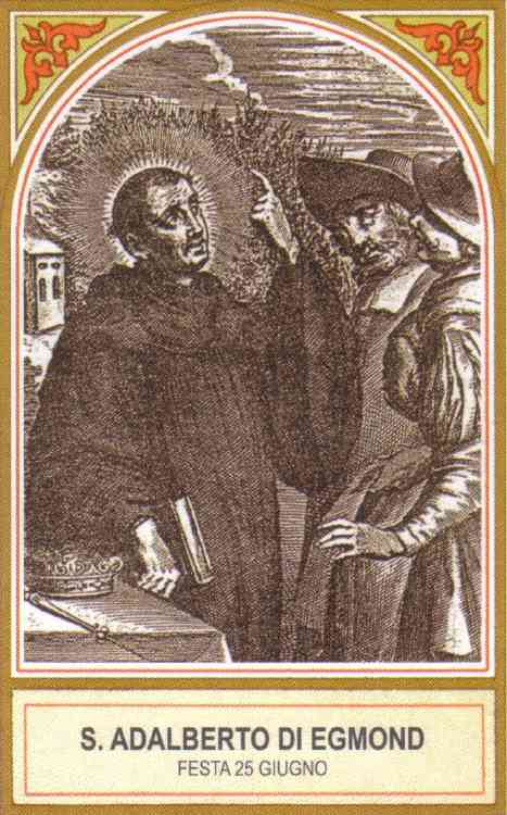 성 빌리브로르두스(Willibrordus)가 프리슬란트(Friesland)를 선교할 때 성 아달베르투스(Adalbertus, 또는 아달베르토)는 그 성인의 부제였다. 노섬브리아(Northumbria) 사람인 그는 성 에그베르투스(Egbertus)를 수행하여 아일랜드까지 갔었다. 아달베르투스는 영혼들을 구하려는 열망에 불탔으며, 그의 관대한 마음과 인내심 그리고 겸손은 수많은 사람들을 개종시켰다. 그는 무슨 이유인지는 모르나 사제직을 받지 않고 부제로서 만족하였다. 또 그의 사망 연대 역시 불확실하지만, 그의 무덤은 순례의 중심지이며 늘 기적이 일어났다. 테오도리쿠스(Theodoricus) 공작은 에그몬트에 수도원을 세우고 그에게 봉헌하였다.